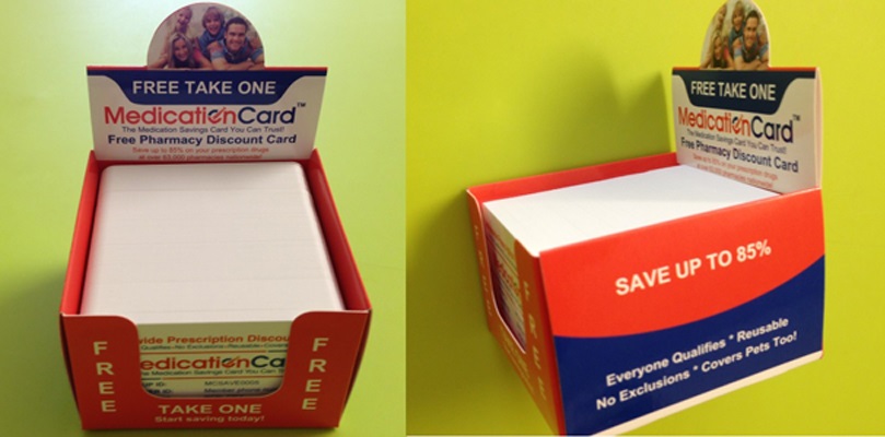 henry@medicationcard.org. You’ll be sent a PayPal invoice to pay for the requested number of displays. The Take-One Display prices below include shipping to anywhere in the continental U.S.A. :